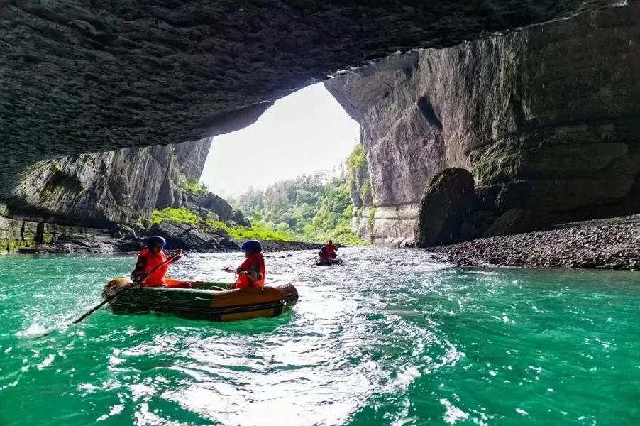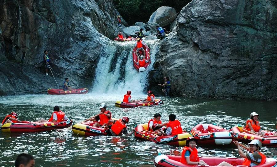 两岸植被原生态,峡谷曲径通幽。漂流过程高潮迭起,尤其是本河道的亮点“三级跳”给人以升天入地的飞翔感受,被漂流者誉为“顶级漂”,垂直落差10多米,摄人心魄。荡舟飞瀑流泉,溪水清澈。如果你钟爱刺激就来此漂流。