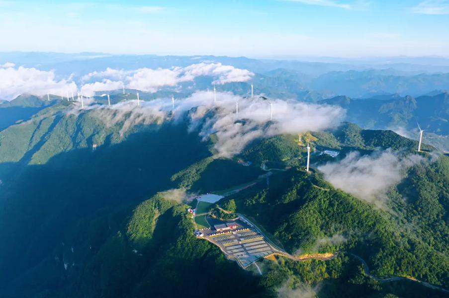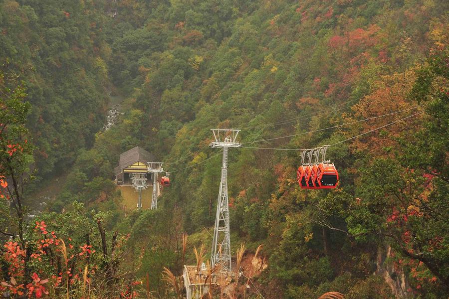 蜿蜒通幽下自桃花潭上至桃花瀑,汇万泉之水,千石之怪,万树之奇。初春桃花初绽,五颜六色,品种繁多,花期各异,漫山遍野的杜鹃花含苞怒放,装点千峰万岭。春可品茶赏花、夏可避暑漂流、秋可登高观叶、冬可滑雪温泉。