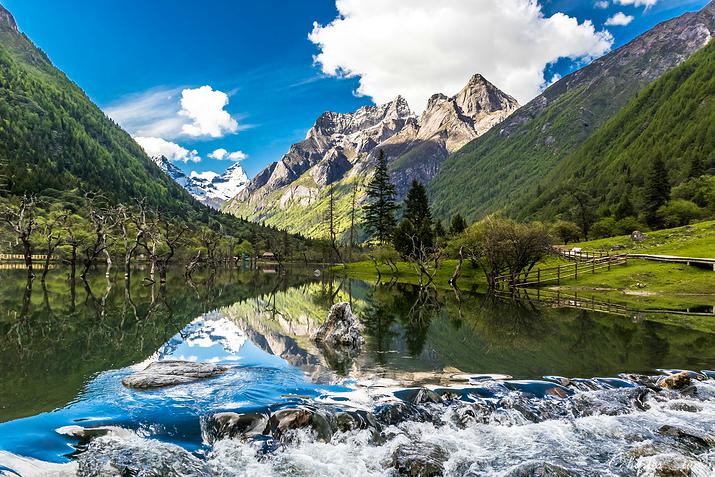 沟内一年四季之景并不相同,春有山花烂漫之色,夏有古树沧桑之景,秋有赤桦红枫之艳,冬有雪峰之悠然。黄昏时分日照金山,日出时分光线洒满湖面,深夜星空银河尽现,是高山摄影家和户外爱好者一生中必去的地点之一。