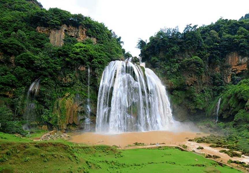 大叠水瀑布壮丽的景色,前人称之为“叠水喷云”,并作诗歌颂:瀑布飞泉几万重,喷云吐雾豁心胸。距离大叠水瀑布数里之外
