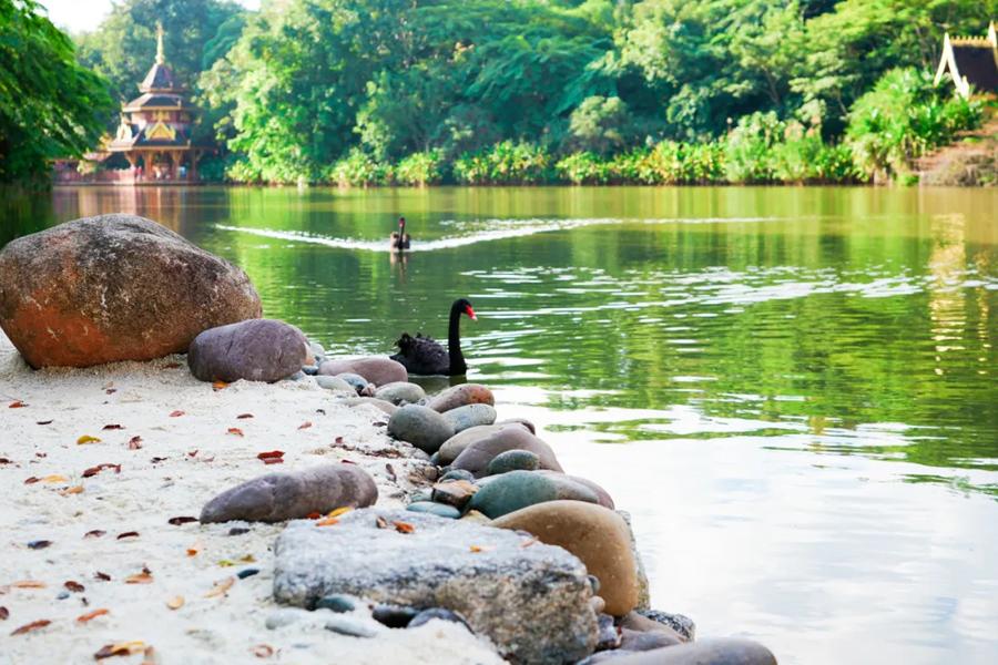曼听御花园自然风光迷人,园内种植了大量的热带植物,如跳舞草、大型的王莲、有保存完好的约500株古铁刀木林等。过去是西双版纳傣王的御花园,参观颇具风情的傣族和泰国式建筑,歌舞篝火晚会是曼听御花园的一大亮点。