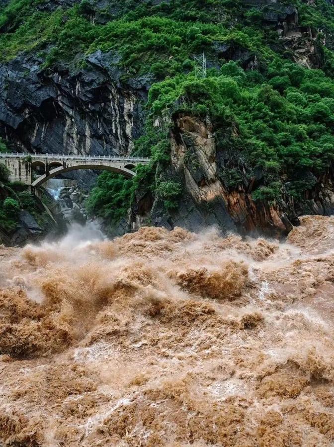 虎跳峡分上、中、下三段,险峻峡谷、悬崖绝壁、巨浪滔天、羊肠小道等。乘坐电梯或徒步至观景台,耳边是震耳欲聋的轰鸣声,那是江水与巨石激烈碰撞的声音,激起千层浪花。虎跳峡有“全球知名经典徒步线路之一”的之称。