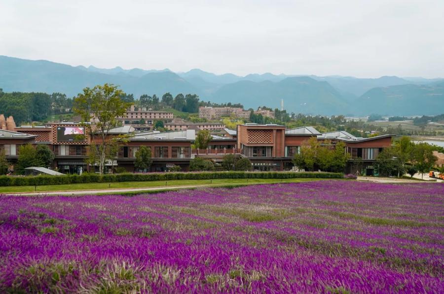 感受艺术的视觉盛宴,花田风车、异形红砖建筑群万花筒艺术馆极具视觉冲击力,百亩紫色的薰衣草花海,万亩葡萄园,百亩油菜花盛放,四季常新的花海浪潮迎来万寿菊的盛花期。万花筒陈列着世间罕见两套的“千人合唱陶俑”。