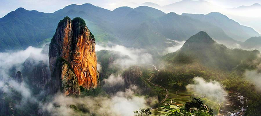 神仙居地质构造独特,是世界上最大的火山流纹岩地貌集群。从北海索道上去,自南天索道下来,数公里的旅程均在数百米高的栈道上。一石一峰,都能自成一格,形成“观音、如来、天姥峰、云海、飞瀑、蝌蚪文”六大奇观。